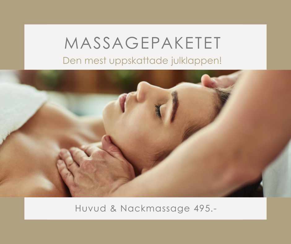 NYHET! En avslappnande behandling där olika tekniker som lymfdränage, akupressur och massage med effektiva grepp individanpassas för bästa resultat. Perfekt vid stelhet kring nacke, hårbotten och dekolltage. I denna massage ligger du skönt nedbäddad på rygg och vår massageterapeut Viktoria tar hand om dig på bästa sätt. Massagen tar ca. 20 min.