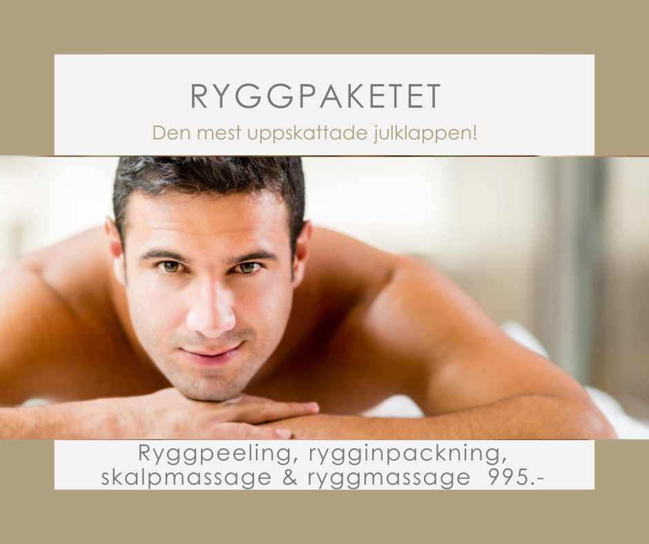 Aromaterapi, ryggpeeling, inpackning i värme, skalpmassage och en rygg & nackmassage. Årets julklapp till alla stressade själar.